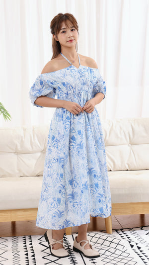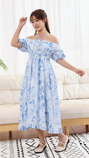 This romantic ruffle neckline highlights the shoulders with a soft, graceful touch, while the flattering silhouette enhances comfort and confidence throughout the day. Perfect festive matching and twinning looks for the couple or the whole family !